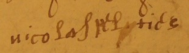Dans le second registre, qui commence en mars 1591, il n’a pas retrouvé qu’une sœur aînée de Nicolas; il en a retrouvé trois. Nicolas était le quatrième enfant et le premier fils de sa famille. Ses parents ont fini par avoir treize enfants, soit neuf filles et quatre fils, à partir de 1592 et jusqu’en 1610. Par contre, faute de recherche effectuée là-dessus, il est impossible en ce moment de confirmer combien parmi eux ont atteint l’âge adulte.