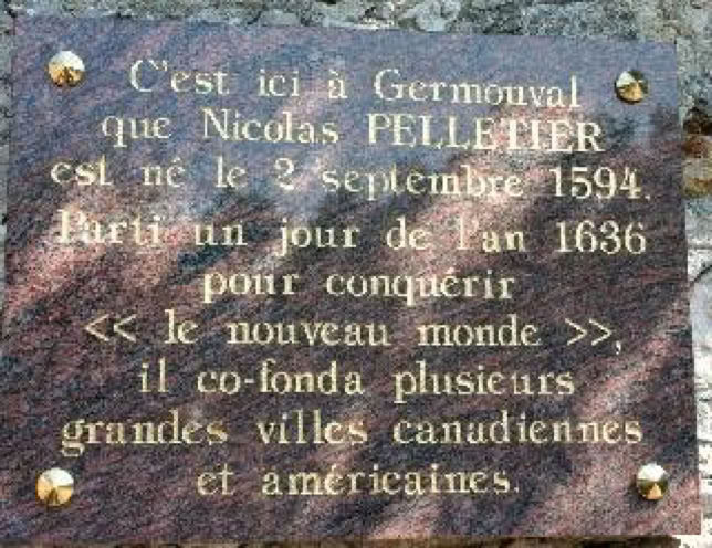« Ce livre fût remis en ce 14 juillet 2005, jours du dévoilement à Germonval d’une plaque à la mémoire du pionnier Nicolas Peltier, ses descendants en Amérique et les membres de l’Association des familles Pelletier vous remercient chaleureusement. »