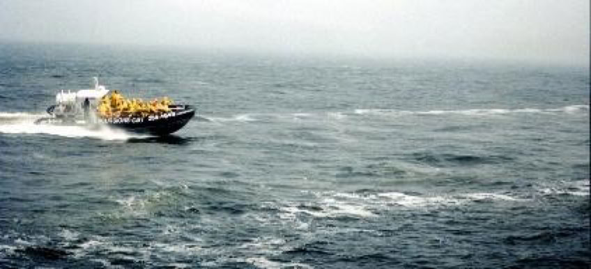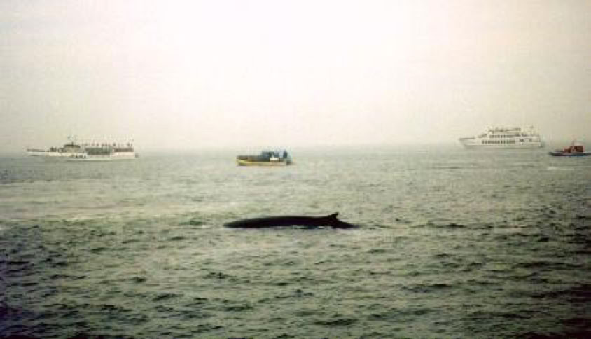 One of the cruise's stops was the port of Tadoussac, but of course, we all expected to see a few giant whales breathing. Unfortunately, the fog was too thick and it limited our visibility down to 100 feet. Theres this rumour that Mrs. Pelletier saw a little common whale at the front of the catamaran but Mr. Pelletier, standing at the back, didnt see a thing.
